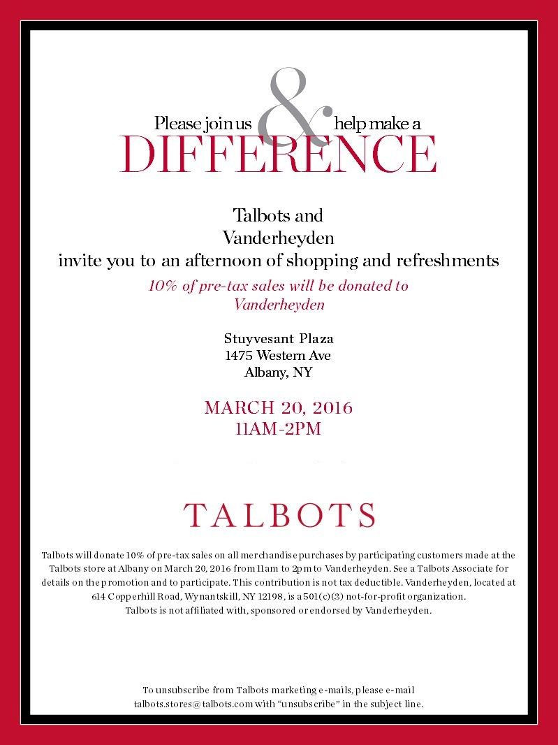 Joins us as we partner with Talbots in Stuyvesant Plaza for a fundraiser to raise money for our Formal Dance for those that are served at Vanderheyden.